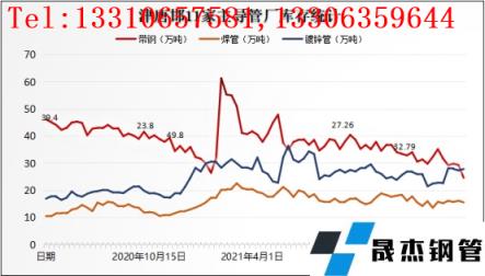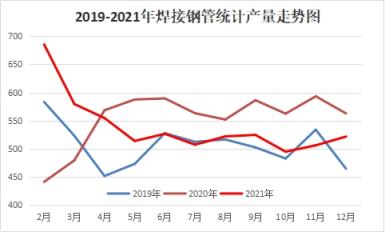 圖3 2019-2021年我國(guó)焊管月度產(chǎn)量走勢(shì)