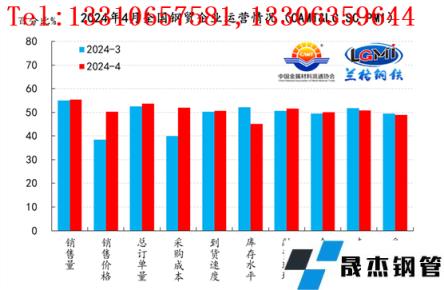 中國金屬材料流通協(xié)會、網(wǎng)聯(lián)合發(fā)布的2024年4月份中金協(xié)&網(wǎng)·厚壁無縫鋼管流通PMI指數(shù)為51.1%,較上月下降0.3個百分點,在擴(kuò)張區(qū)間內(nèi)略有回落。從分類指數(shù)看,構(gòu)成中金協(xié)&網(wǎng)·厚壁無縫鋼管流通PMI的10個分類指數(shù)7升3降,其中銷售量、銷售價格、總訂單量、采購成本、到貨速度、融資環(huán)境和企業(yè)雇員7項指數(shù)上升,庫存水平、走勢判斷和采購意愿3項指數(shù)下降。