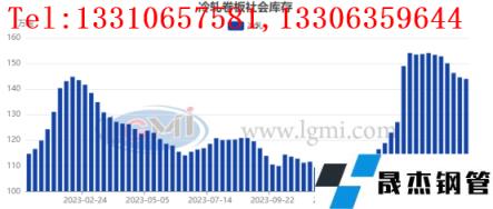 據(jù)網(wǎng)監(jiān)測(cè)數(shù)據(jù)顯示,截至4月26日,全國(guó)冷軋板卷庫(kù)存144.03萬(wàn)噸,環(huán)比下降5.73%,同比上升17.61%。其中天津冷軋庫(kù)存13.69萬(wàn)噸,環(huán)比下降17.73%,同比上升26.64%;上海冷軋庫(kù)存27.61萬(wàn)噸,環(huán)比下降5.58%,同比上升2.90%;廣州冷軋庫(kù)存43.26萬(wàn)噸,環(huán)比下降5.07%,同比上升51.94%。