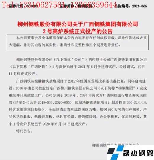 免責聲明:本網站(山東聊城晟杰無縫鋼管廠www.82912.cn)刊載的“重磅!12月10大鋼鐵項目投產、復產!”等均源于網絡,版權歸原作者所有,且僅代表原作者觀點,本文所載信息僅供參考。轉載僅為學習與交流之目的,如無意中侵犯您的合法權益,請及時聯系刪除。本網站刊登此篇文章并不意味著本站贊同其觀點或證實其內容的真實性,我們不對其科學性、嚴肅性等作任何形式的保證。如果侵犯了您的版權,請盡快聯系我們予以撤銷,謝謝合作!