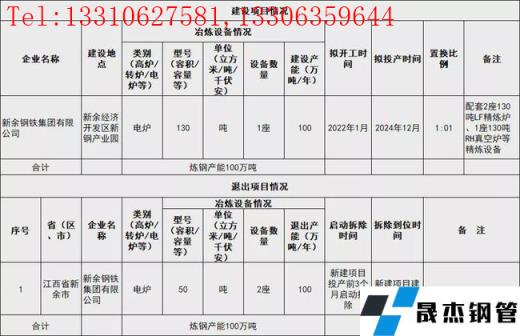 2022年1月7日,浙江省經信廳發布浙江譽鑫實業技術改造升級建設項目產能置換方案。方案顯示,浙江譽鑫實業有限公司擬于2022年6月新建140t電弧爐1座和140tLF精煉爐2座,產能110萬噸/年,項目預計2024年5月投產。同時退出70t電弧爐2座、120tLF精煉爐1座和90tLF精煉爐1座,共計退出產能110噸。項目于2023年11月啟動拆除,并于2024年4月拆除到位。