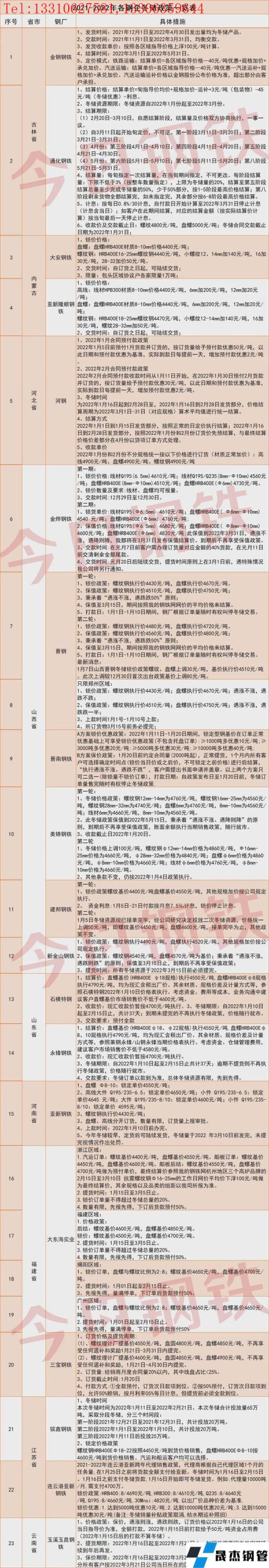 每年的12月至次年1月進入鋼鐵行業的冬儲期。截至目前,已有19家鋼企陸續出臺相應的冬儲政策,【今日鋼鐵】進行如下整理: