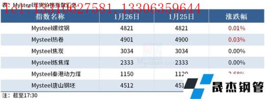 ◎ 據調研,全國45家冷軋鍍鋅彩涂生產企業停產時間多集中在1月24日,復產時間集中在2月7日左右,部分偏北方地區在2月20日。多數無縫鋼管廠檢修與去年相比基本持平,產量總體影響不大,部分減量主要體現在華北地區,預計影響鍍鋅產量9.2萬噸,較去年同期基本持平。詳情>>