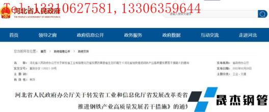免責聲明:本網站(山東聊城晟杰無縫鋼管廠www.82912.cn)刊載的“重磅文件出爐!河北鋼鐵大調整!嚴查、重組、退出...”等均源于網絡,版權歸原作者所有,且僅代表原作者觀點,本文所載信息僅供參考。轉載僅為學習與交流之目的,如無意中侵犯您的合法權益,請及時聯系刪除。本網站刊登此篇文章并不意味著本站贊同其觀點或證實其內容的真實性,我們不對其科學性、嚴肅性等作任何形式的保證。如果侵犯了您的版權,請盡快聯系我們予以撤銷,謝謝合作!