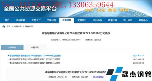 免責聲明:本網站(山東聊城晟杰無縫鋼管廠www.82912.cn)刊載的“6.4億!中冶股份轉讓一鐵礦70%股權及9.27億債權!”等均源于網絡,版權歸原作者所有,且僅代表原作者觀點,本文所載信息僅供參考。轉載僅為學習與交流之目的,如無意中侵犯您的合法權益,請及時聯系刪除。本網站刊登此篇文章并不意味著本站贊同其觀點或證實其內容的真實性,我們不對其科學性、嚴肅性等作任何形式的保證。如果侵犯了您的版權,請盡快聯系我們予以撤銷,謝謝合作!