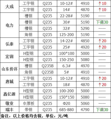 今日型、板材共9家鋼廠調價發(fā)布,其中: