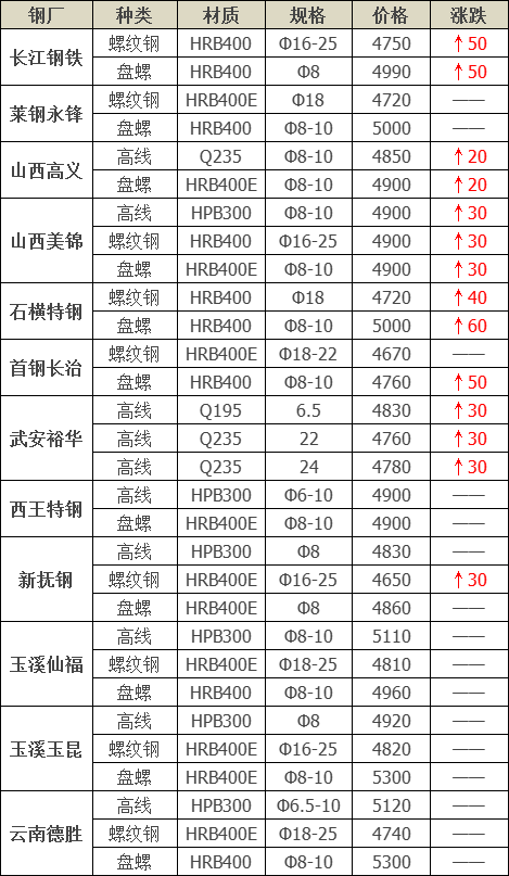 上調7家,占比58.3%,調價幅度20-60元/噸;