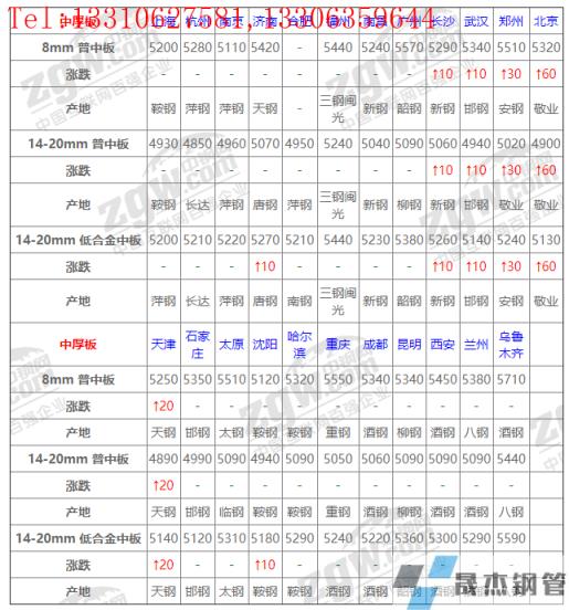 全國23個主要市場14-20mm 低合金中板平均價格5260元/噸,較上個交易日上調(diào)8元/噸。