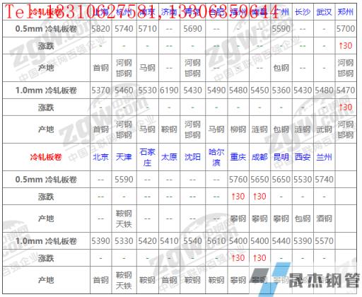 全國23個主要市場1.0mm 冷軋板卷平均價格5480元/噸,較上個交易日上調(diào)4元/噸。