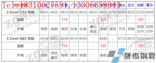 全國12個主要市場2.5mm*232 帶鋼平均價格4843元/噸,較上個交易日上調(diào)4元/噸。