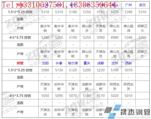 全國15個主要市場1.5寸*3.25 焊管平均價格5199元/噸,較上個交易日價格相同