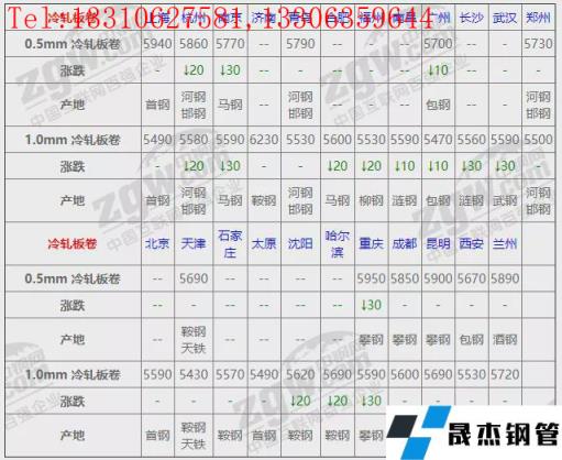 全國23個主要市場1.0mm 冷軋板卷平均價格5599元/噸,較上個交易日下調13元/噸。