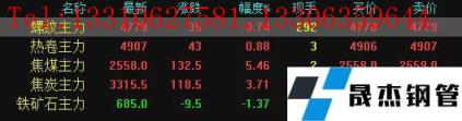 今日螺紋主力期貨漲35,收報4779,漲幅0.74%;熱卷主力漲43,收報4907,漲幅0.88%;焦煤主力漲132.5,收報2558,漲幅5.46%;焦炭主力漲118.5,收報3315.5,漲幅3.71%;鐵礦石主力跌9.5,收報685,跌幅1.37%。