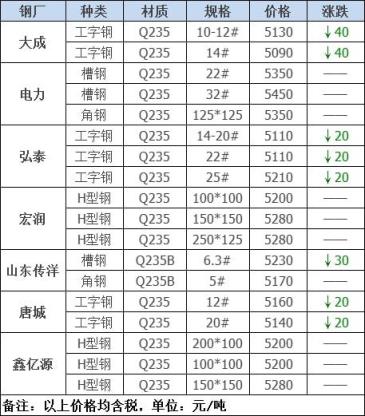 2月23日邯鄲華信廢鋼跌20,現(xiàn)執(zhí)行:鋼筋頭3580-3650,沖豆鐵餅3580-3650,模具鋼純道軌U型鋼3640,鋼板料3620-3650,工角槽板料3480-3580,馬蹄鐵3530-3580,火車小料3640,剪切料3600-3580,破碎料3350-3400,不含稅,單位:元/噸。