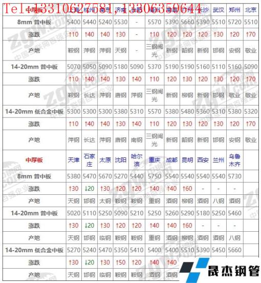 3月1日中厚板價格:以漲為主;