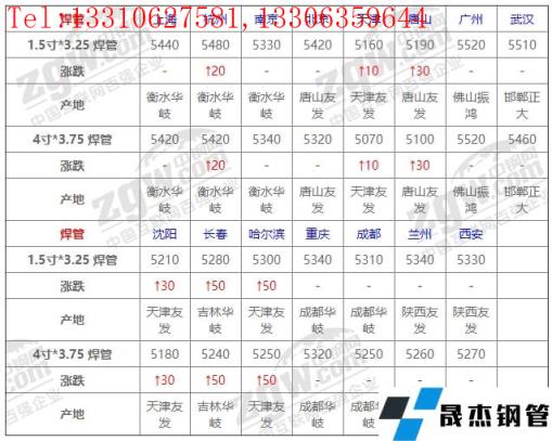 全國15個主要市場1.5寸*3.25 焊管平均價格5344元/噸,較上個交易日上調7元/噸。