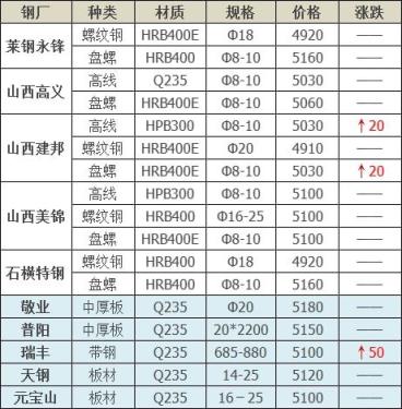 3月25日安豐廢鋼上調30,調后:圓鋼頭、四厚沖豆3880模具鋼3860,大槽鋼3760,無油汽車大梁3660,2厚馬碲鐵3760,無銹小定子、轉子3570,無銹大定子3700,新管頭壓鐵鍬壓料3690,大車輪轂3740,大水洗鋼件3640,冷板小料3680,三角矽鋼片3680,倆厚鐵豆3820斤大工字板/頂絲3800不含稅,單位:元/噸。