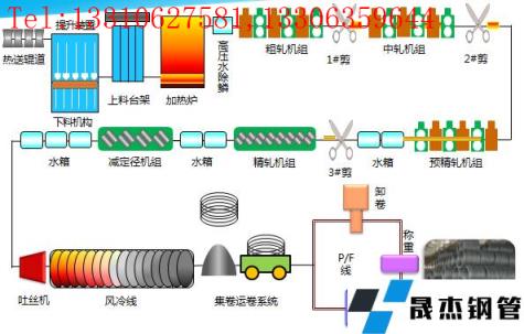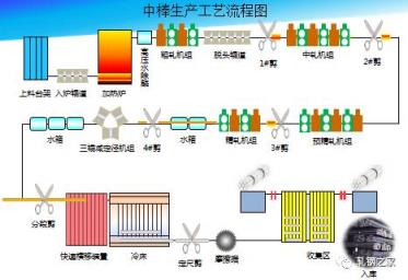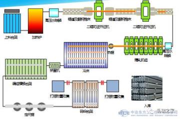 加熱爐、高壓水除鱗、軋機、輪廓儀或測徑儀、剪或鋸、熱打印機、冷床、矯直機、編組臺架、碼垛臺架、打捆機、稱重設(shè)備、噴標(biāo)等設(shè)備