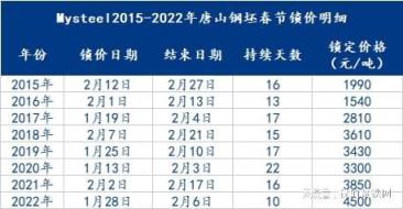 2022年1月28日唐山主流鋼坯價格進入鎖價狀態,下面我們先回顧一下歷年鋼坯價格的鎖價時間點: