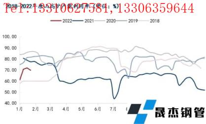 圖-1 2018-2022年唐山地區高爐產能利用率走勢