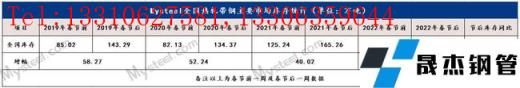表1:2019-2022年春節前后全國帶鋼庫存數據表(單位(萬噸))