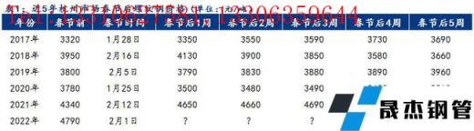 免責聲明:本網站(山東聊城晟杰無縫鋼管廠www.82912.cn)刊載的“近5年春節前后杭州市場螺紋鋼價格和庫存走勢”等均源于網絡,版權歸原作者所有,且僅代表原作者觀點,本文所載信息僅供參考。轉載僅為學習與交流之目的,如無意中侵犯您的合法權益,請及時聯系刪除。本網站刊登此篇文章并不意味著本站贊同其觀點或證實其內容的真實性,我們不對其科學性、嚴肅性等作任何形式的保證。如果侵犯了您的版權,請盡快聯系我們予以撤銷,謝謝合作!