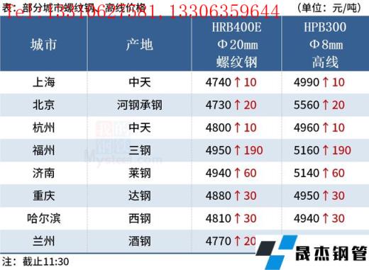 ◎福州:7日早盤建材市場價格大漲190,現線三鋼5160三寶5140,螺三鋼4950三寶4930大東海4930吳鐵4920,盤三鋼5230三寶5210。(單位:元/噸)