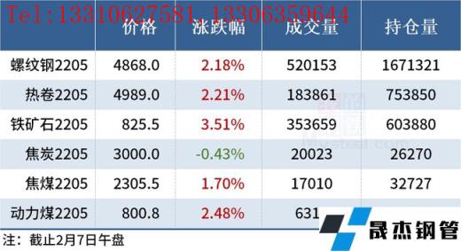 免責聲明:本網站(山東聊城晟杰無縫鋼管廠www.82912.cn)刊載的“2022年02月07日午報:鋼價全線上漲,鐵礦石期貨漲逾3%”等均源于網絡,版權歸原作者所有,且僅代表原作者觀點,本文所載信息僅供參考。轉載僅為學習與交流之目的,如無意中侵犯您的合法權益,請及時聯系刪除。本網站刊登此篇文章并不意味著本站贊同其觀點或證實其內容的真實性,我們不對其科學性、嚴肅性等作任何形式的保證。如果侵犯了您的版權,請盡快聯系我們予以撤銷,謝謝合作!