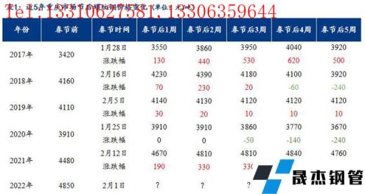 免責聲明:本網站(山東聊城晟杰無縫鋼管廠www.82912.cn)刊載的“近5年春節前后重慶螺紋鋼價格和庫存走勢”等均源于網絡,版權歸原作者所有,且僅代表原作者觀點,本文所載信息僅供參考。轉載僅為學習與交流之目的,如無意中侵犯您的合法權益,請及時聯系刪除。本網站刊登此篇文章并不意味著本站贊同其觀點或證實其內容的真實性,我們不對其科學性、嚴肅性等作任何形式的保證。如果侵犯了您的版權,請盡快聯系我們予以撤銷,謝謝合作!