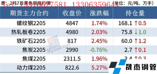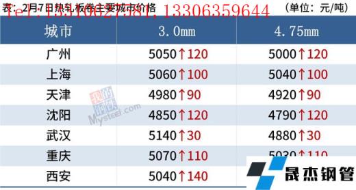 熱軋板卷:2月7日,全國(guó)24個(gè)主要城市4.75mm熱軋板卷均價(jià)5011元/噸,較節(jié)前(1月30日)上漲97元/噸。目前整體市場(chǎng)上漲幅度較大,在冬奧會(huì)限產(chǎn)背景下,需求將逐漸趨于好轉(zhuǎn),現(xiàn)貨市場(chǎng)情緒較為樂(lè)觀,各地厚壁無(wú)縫鋼管現(xiàn)貨價(jià)格全面上漲。春節(jié)期間,主流無(wú)縫厚壁鋼管廠家均上調(diào)2月出廠價(jià),截止2月6日,全國(guó)五大主要厚壁無(wú)縫鋼管品種總庫(kù)存共增加477.47萬(wàn)噸至2030.02萬(wàn)噸,較去年同期下降27%,環(huán)比增幅30.77%。故預(yù)計(jì)8日熱軋板卷價(jià)格或?qū)⒎€(wěn)中上行。