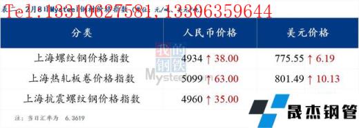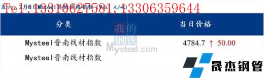 免責聲明:本網站(山東聊城晟杰無縫鋼管廠www.82912.cn)刊載的“2022年02月08日日報:鋼材_無縫鋼管價格指數上漲67.61元/噸”等均源于網絡,版權歸原作者所有,且僅代表原作者觀點,本文所載信息僅供參考。轉載僅為學習與交流之目的,如無意中侵犯您的合法權益,請及時聯系刪除。本網站刊登此篇文章并不意味著本站贊同其觀點或證實其內容的真實性,我們不對其科學性、嚴肅性等作任何形式的保證。如果侵犯了您的版權,請盡快聯系我們予以撤銷,謝謝合作!