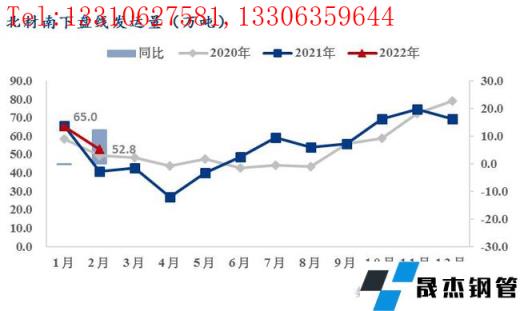 2022年2月東北螺紋南下計(jì)劃量為75.3萬(wàn)噸,同比增加11.1萬(wàn)噸環(huán)比增加0.5萬(wàn)噸,盤(pán)線南下計(jì)劃量52.8萬(wàn)噸,同比增加12.1萬(wàn)噸環(huán)比減少12.2萬(wàn)噸;1月東北螺紋南下實(shí)發(fā)量為74.8萬(wàn)噸,同比減少8.7萬(wàn)噸環(huán)比減少30.8萬(wàn)噸,盤(pán)線南下實(shí)發(fā)量65.0萬(wàn)噸,同比減少0.5萬(wàn)噸環(huán)比減少13.6萬(wàn)噸。受無(wú)縫厚壁鋼管廠家1月實(shí)際產(chǎn)量較計(jì)劃減量以及無(wú)縫厚壁鋼管廠家增加省內(nèi)投放等因素影響,1月螺紋和盤(pán)線的南下實(shí)發(fā)量較月初計(jì)劃分別減少19.1萬(wàn)噸和27.9萬(wàn)噸。