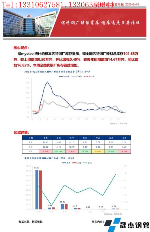 核心觀點(diǎn): 據(jù)mysteel統(tǒng)計(jì)的樣本優(yōu)特?zé)o縫厚壁鋼管廠家?guī)齑骘@示,現(xiàn)全國優(yōu)特?zé)o縫厚壁鋼管廠家棒材總庫存101.85萬噸,較上周增加0.50萬噸,環(huán)比增幅0.49%,較去年同期增加14.67萬噸,同比增加16.82%。本周全國優(yōu)無縫厚壁鋼管廠家?guī)齑胬^續(xù)增加。