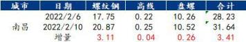 今年春節(jié)節(jié)前JJPG檢修,使得南昌建筑厚壁無(wú)縫鋼管市場(chǎng)春節(jié)前庫(kù)存非常低,而二月中旬FDTG有計(jì)劃進(jìn)行檢修,對(duì)盤螺產(chǎn)量影響較大,由此可預(yù)計(jì)南昌建材庫(kù)存累庫(kù)速度將慢于往年。