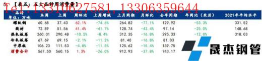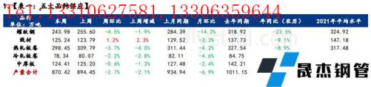 庫存方面,五大品種厚壁無縫鋼管總庫存連續六周累增,環比上周增加159.65萬噸,增幅7.9%;其中建材庫存增加111.2萬噸,增幅為8.4%;板材庫存增加48.45萬噸,增幅6.8%。