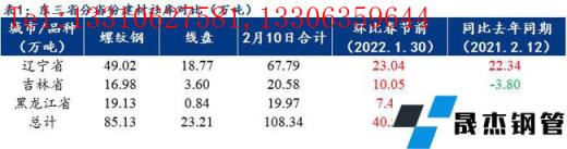 本周為春節(jié)后第二周,東三省建筑厚壁無縫鋼管現(xiàn)貨庫存整體較春節(jié)前最后一周增加40.52萬噸,其中螺紋鋼現(xiàn)貨庫存85.13萬噸,線盤23.21萬噸,建材社會庫存總量為108.34萬噸,較上周增40.52萬噸,增幅高達37.40%。據(jù)悉春節(jié)期間各市場到貨較多,尤其以沈陽和長春市場累庫最為明顯,主要是西鋼、新?lián)徜摗⑿蛮i輝和四平等廠庫陸續(xù)前移至市場。