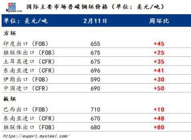 越南資源價格依舊較高。本周越南報價680-685美元/噸FOB,較節前上漲約30美元/噸。越南無縫厚壁鋼管廠家表示,即使目前中國方坯價格正在上漲,但還是未達到越南資源出口盈利水平。