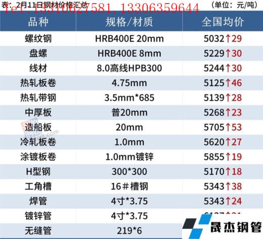 建筑厚壁無縫鋼管:2月11日,全國31個主要城市20mm三級抗震螺紋鋼均價5032元/噸,較上個交易日上漲29元/噸。短期來看,目前現貨市場仍然處于供需雙弱的格局,情緒面驅動價格上漲,同時當前現貨市場庫存總量遠低于去年同期。因此預計下周國內建筑厚壁無縫鋼管價格或將繼續趨強為主。