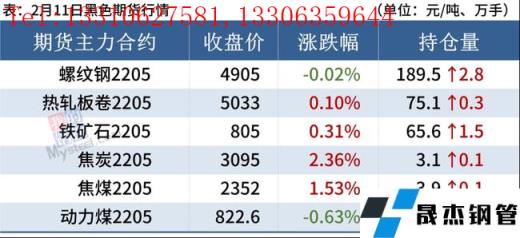進口礦:2月11日,山東地區進口鐵礦石現貨價格先揚后抑,收盤后市場賣盤增加,無縫厚壁鋼管廠家詢盤冷清,市場成交情況一般。截止發稿,市場部分成交:日照港:PB粉985元/噸;青島港PB粉978元/噸;嵐山港PB粉970元/噸。華東地區因天氣原因疊加冬奧會限產,無縫厚壁鋼管廠家檢修數量增加,本周鐵水產量有所下降,目前無縫厚壁鋼管廠家多以消耗庫存為主,短期無縫厚壁鋼管廠家采購鐵礦石意向偏弱。