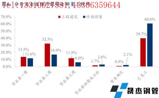 分行業(yè)來看,終端銷售樣本企業(yè)中,60.6%的企業(yè)目前已經(jīng)完全復(fù)工,節(jié)后第二周內(nèi)能夠復(fù)工的樣本企業(yè)占比可以達(dá)到89.1%,主要由于今年節(jié)前冬儲(chǔ)備貨情況整體較少,節(jié)后開門紅的行情走勢(shì)下,很多企業(yè)提前復(fù)工,積極入市詢價(jià)采購(gòu),以爭(zhēng)取利潤(rùn)最大化。工程建筑樣本企業(yè)中,39.7%的企業(yè)目前已經(jīng)完成復(fù)工,節(jié)后第二周內(nèi)能夠復(fù)工的樣本企業(yè)占比可以達(dá)到85.6%,整體進(jìn)度情況也要好于往年同期水平。僅0.9%的工程建筑企業(yè)和2.1%的終端銷售企業(yè)暫未有明確的復(fù)工時(shí)間,主要是受疫情以及冬奧會(huì)的影響。