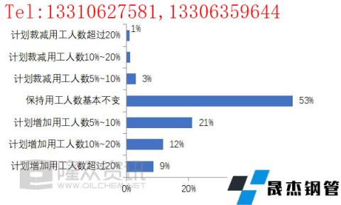 在樣本企業中,僅有5%的企業選擇裁員,同比持穩;42%的企業選擇擴招,同比下降4個白風電;剩余53%的企業維持基本不變。