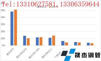 2、從企業自身生產經營狀況來看, 37.8%的企業表示當前訂單量同比有增長,有46.9%的企業訂單量同比基本持平。而從不同主營業務的企業來看, 38%的生產制造企業表示訂單有增長,主營業務為工程建筑和終端消費的企業中,訂單有增長的占比為45%。在訂單增長的同時,企業庫存也有所增加,其中36.4%的企業表示訂單有增長,但較去年相比,增長幅度達到20%的企業數占比為11%,低于去年同期3.16個百分點。營收方面,40.44%的企業表示營收與去年基本持平,高于去年同期,42.36%的企業表示有增長,但明顯低于去年同期。