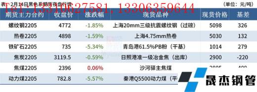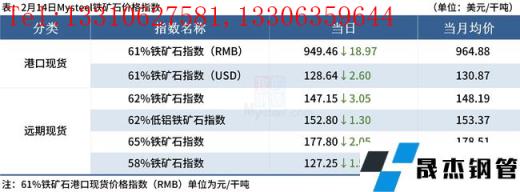 ◎ 2月14日,全國主港鐵礦石成交90.30萬噸,環(huán)比增7.9%;237家主流貿(mào)易商建材成交5.61萬噸。