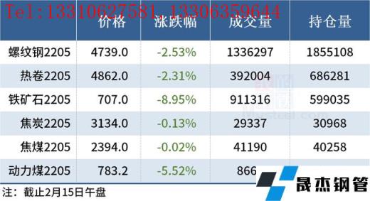 免責聲明:本網站(山東聊城晟杰無縫鋼管廠www.82912.cn)刊載的“2022年02月15日午報:鋼價普遍下跌,鐵礦石期貨跌逾8%”等均源于網絡,版權歸原作者所有,且僅代表原作者觀點,本文所載信息僅供參考。轉載僅為學習與交流之目的,如無意中侵犯您的合法權益,請及時聯系刪除。本網站刊登此篇文章并不意味著本站贊同其觀點或證實其內容的真實性,我們不對其科學性、嚴肅性等作任何形式的保證。如果侵犯了您的版權,請盡快聯系我們予以撤銷,謝謝合作!