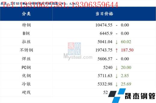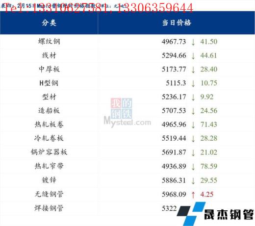 免責聲明:本網站(山東聊城晟杰無縫鋼管廠www.82912.cn)刊載的“2022年02月15日日報:鋼材_無縫鋼管價格指數下跌45.19元/噸”等均源于網絡,版權歸原作者所有,且僅代表原作者觀點,本文所載信息僅供參考。轉載僅為學習與交流之目的,如無意中侵犯您的合法權益,請及時聯系刪除。本網站刊登此篇文章并不意味著本站贊同其觀點或證實其內容的真實性,我們不對其科學性、嚴肅性等作任何形式的保證。如果侵犯了您的版權,請盡快聯系我們予以撤銷,謝謝合作!