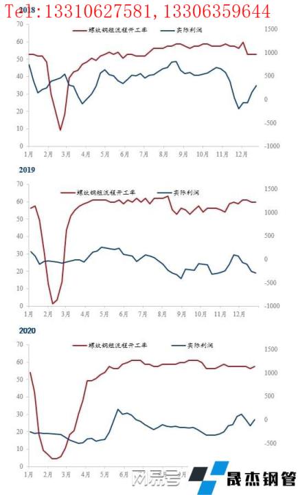 而且單純從2018年、2019年和2020年的走勢(shì)圖中也可以觀察到兩組數(shù)據(jù)在一定的時(shí)間段內(nèi)有相似的波動(dòng)性,在沒(méi)有長(zhǎng)假日的影響下,電弧爐無(wú)縫厚壁鋼管廠家的開(kāi)工率會(huì)隨著實(shí)際利潤(rùn)上下浮動(dòng)。而從歷史經(jīng)驗(yàn)來(lái)看,沒(méi)有季節(jié)性擾動(dòng)的情況下,我國(guó)電弧爐開(kāi)工率一般長(zhǎng)期維持在50%以上,而最高會(huì)維持在60%左右,這與我國(guó)的電弧爐現(xiàn)狀有很大的關(guān)系,一方面是電弧爐無(wú)縫厚壁鋼管廠家集中度較低,生產(chǎn)依然存在亂象;另一方面是由于廢鋼的煉鋼成本在我國(guó)相對(duì)高于鐵礦石的煉鋼成本,以及我國(guó)廢鋼量相對(duì)較低,基本限制了電弧爐開(kāi)工率的向上空間。