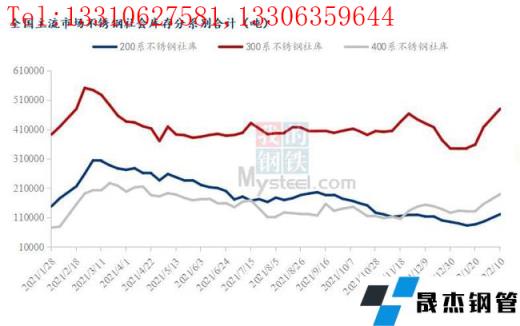 節后市場復工及時,需求恢復也比較樂觀;加之雖然庫存雖然出現明顯增加,但民營無縫厚壁鋼管廠家資源并不十分充裕,部分熱軋還存在規格缺貨現象,貿易商手中庫存并不算高,多集中在無縫厚壁鋼管廠家前置及代理商倉庫。據調研,2022年2月10日全國主流市場不銹鋼社會庫存總量79.04萬噸,較上期(1月27日)增加18%;其中300系不銹鋼庫存總量47.95萬噸,較上期增14.83%。