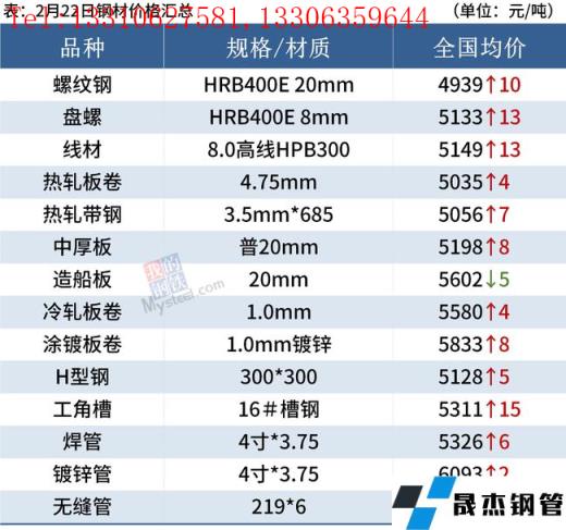 建筑厚壁無縫鋼管:2月22日,全國31個主要城市20mm三級抗震螺紋鋼均價4939元/噸,較上個交易日上漲10元/噸。短期來看,消費雖有恢復預期但下游資金到位情況較差,前期偏高的春季消費預期大概率將被證偽,若本周需求仍無明顯好轉跡象,則現(xiàn)貨存在繼續(xù)下跌的風險,預計23日國內(nèi)建筑厚壁無縫鋼管或將穩(wěn)中趨弱運行。