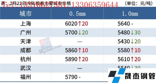 冷軋板卷:2月22日,全國24個主要城市1.0mm冷卷均價5580元/噸,較上個交易日上漲4元/噸。今日黑色期貨呈現(xiàn)高開低走的態(tài)勢,并且午后期貨盤面大幅跳水,現(xiàn)貨市場較為冷清,詢單人數(shù)明顯減少。無縫厚壁鋼管廠家方面,進入2月下旬,各大無縫厚壁鋼管廠家結算陸續(xù)公布,據(jù)了解,AG對上海地區(qū)冷軋結算價到庫5470元/噸,BG對上海地區(qū)冷軋結算價到庫5450元/噸,稍有盈利空間。下游方面,下游終端企業(yè)以謹慎觀望為主,再加上現(xiàn)處于銷售淡季,需求持續(xù)疲軟。綜合來看,故預計23日國內(nèi)冷軋板卷價格或將震蕩偏弱運行。