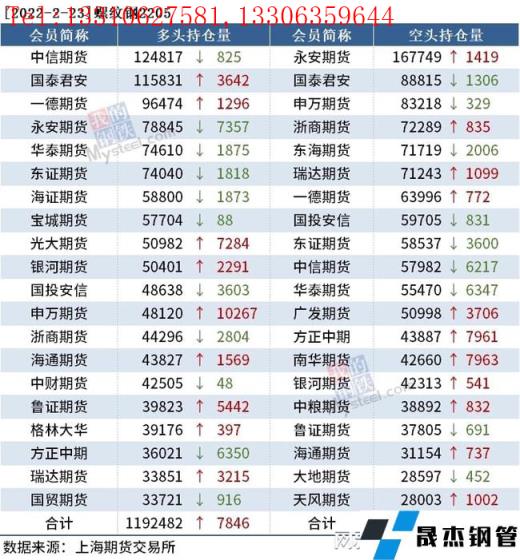 截至2月23日收盤,螺紋鋼2205收4786元/噸,跌0.71%;熱卷2205收4917元/噸,跌0.36%;鐵礦石2205收700元/噸,跌0.78%。